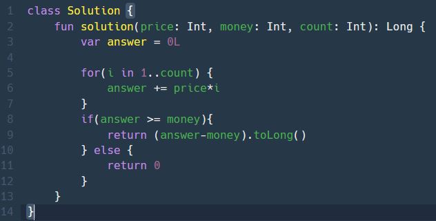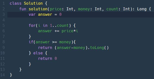8) 놀이기구의 총 이용료(answer)가 가지고 있던 금액(money)보다 크거나 같을 때 answer-money를 리턴한다