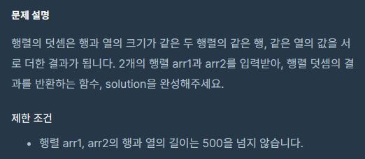 행과 열의 크기가 같은 두 행렬의 같은 행, 같은 열의 값을 서로 더한 결과를 리턴하기