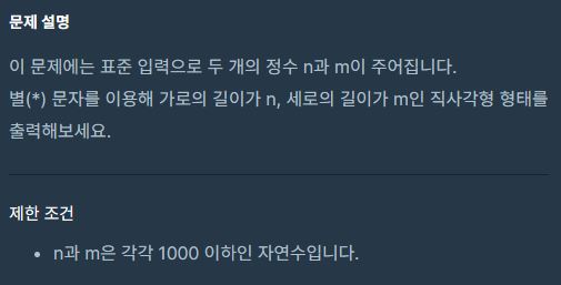가로의 길이가 n, 세로의 길이가 m인 직사각형 형태의 *을 출력해 보기