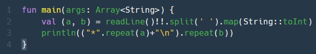 a만큼 반복한 * + \n(줄 바꿈)을 b만큼 repeat 시킨다 (세로줄)