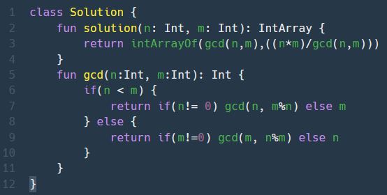 n과 m의 최대공약수와 최소공배수를 배열로 리턴 시키기